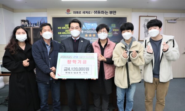 지난 10일 최영오·엄효정씨 부부는 자녀들과 함께 부안군 근농인재육성재단을 찾아 412만원을 장학금으로 기탁했다.
