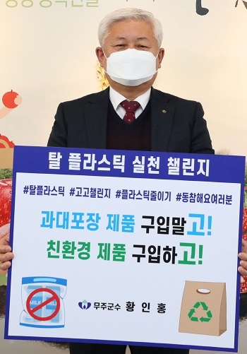 황인홍 무주군수가 ‘생활 속 탈 플라스틱’을 주제로 한 릴레이 캠페인에 동참했다.