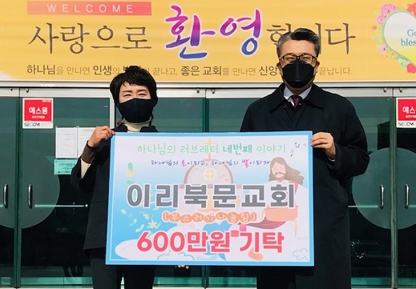 이리북문교회(담임목사 김종대)가 22일 1000여명의 신도들이 돼지 저금통 동전을 모아 마련한 600만원을 신동 행정복지센터에 전달했다.
