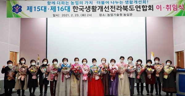 한국생활개선전라북도연합회는 지난 23일 전라북도농업기술원에서 제15대 정명숙 회장, 제16대 심명순 회장 이·취임식을 개최했다.