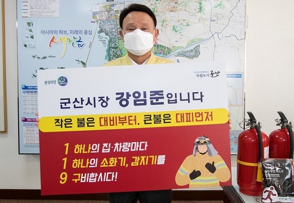 강임준 군산시장이 3일 화재예방을 위한 필수 시설인 소화기와 화재감지기의 중요성을 알리기 위해 ‘119 릴레이 챌린지’에 동참했다.‘