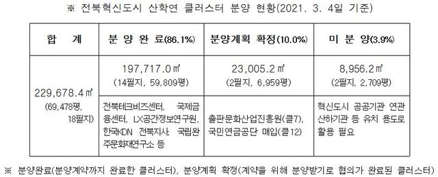 전북혁신도시 산학연 클러스터 부지 완판이 눈앞으로 다가왔다.