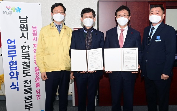 남원시는 9일 한국철도공사 전북본부와 철도 관광 활성화를 위해 업무협약을 체결했다.