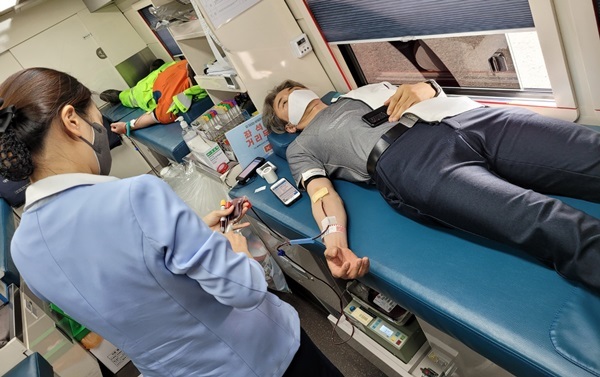 이날 헌혈은 코로나19 장기화로 인해 국가적으로 빚어지는 혈액 수급난을 해소하기 위한 것으로 대한적십자사 이동 헌혈차량 2대에서 임직원 70명이 참여했다.