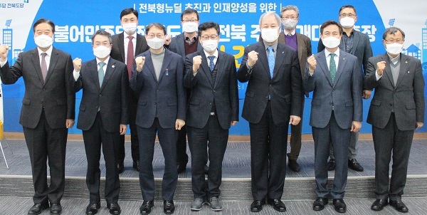 참석자는 김동원 전북대학교 총장, 박맹수 원광대학교 총장, 이호인 전주대학교 총장, 남천현 우석대학교 총장, 곽병선 군산대학교 총장, 임성진 도당 K-뉴딜위원회 공동위원장, 나인호 도당 K-뉴딜위원회 디지털분과위원장, 서난이 도당 K-뉴딜위원회 운영위원, 유충종 도당 사무처장 등이다.