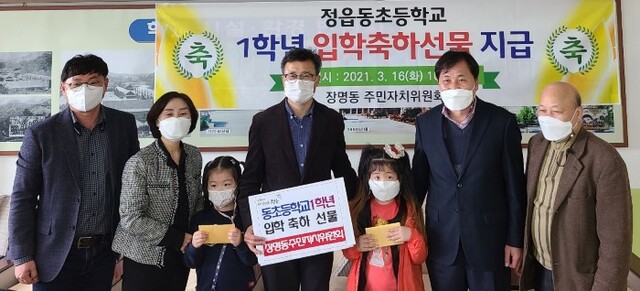 정읍시 장명동(동장 고명석) 주민자치위원회는 새 학기를 맞아 관내 동초등학교 새내기 입학생 32명에게 문구 상품권을 전달했다.