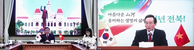 전북도 송하진지사와 응웬 타인 펑 호치민시 인민위원장이 양 지역의 교류 확대를 위한 화상회의를 지난 19일 진행했다.