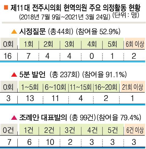제11대 전주시의회 개원 3년 다되가는데… 의원 47% ‘시정질문 0건’