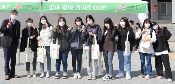 대학혁신사업단 주관으로 학생회관 앞 새세대 광장에서 진행된 ‘2021학번 새내기를 위한 웰컴기프트’ 증정 행사는 코로나19로 급격하게 변한 시대에 입학한 신입생들을 격려하고, 대학혁신사업단의 주요 교육 프로그램 홍보를 목적으로 기획됐다.