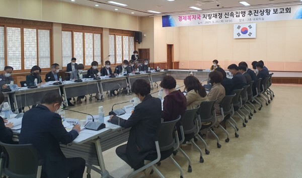 김제시 경제복지국(국장 신미란)은 7개 부서 30명 팀장이 참석한 가운데 2021년 상반기 지방재정 신속집행 추진상황 보고회를 25일 개최했다.