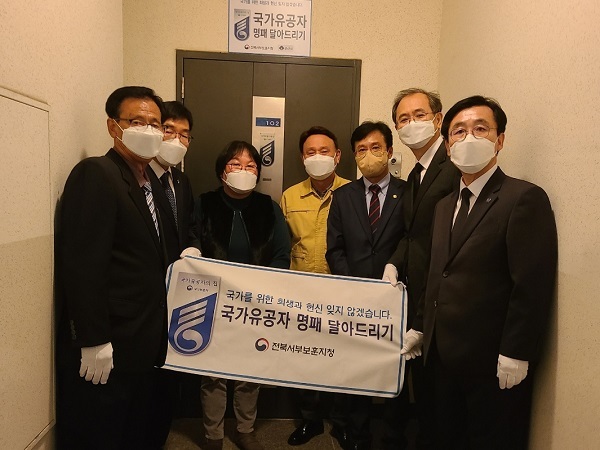 이번 행사는 강임준 군산시장·최정길 국가보훈처 전북서부보훈지청장 등 코로나19 확산 예방을 위해 최소한의 인원만 참여한 가운데 명패를 부착하고 국가에 대한 헌신에 감사와 존경의 뜻을 표했다.