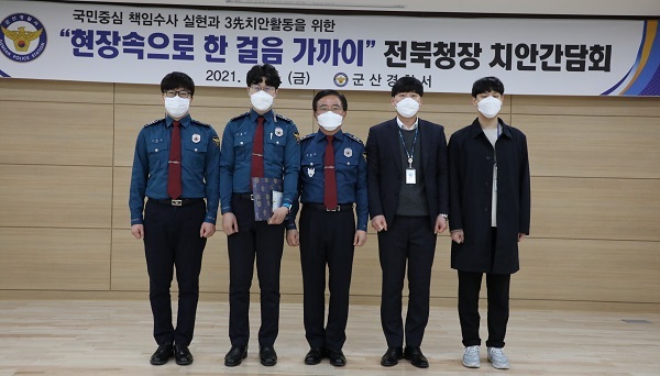 또 군산지역의 치안을 안정적으로 유지해준 직원들에게 감사인사를 전하며 업무 유공 경찰관 4명에게 표창장을 수여했다.