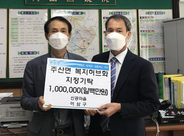 지난 26일 부안 주산면 신공마을 이삼구(지역사회보장협의체 위원)는 주산면 지역사회보장협의체에 관내 소외계층과 지역사회복지 활성화를 위해 100만원을 기탁했다.