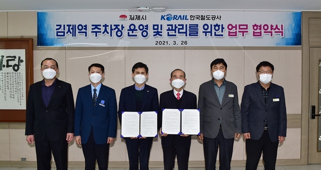 김제시는 한국철도공사 전북지역본부와 김제역 공영주차장 확장 조성에 따른 운영 및 관리 협약을 체결했다.