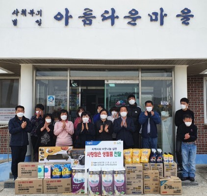 NH농협은행 고창군지부(지부장 진기영)가 26일 고창군 부안면 소재 야고바의집 등 고창 관내 3개 복지시설을 방문하여 각 100만원 상당의 사랑담은 생필품을 전달했다. 이날 방문에는 진기영 고창군지부장과 박병철 지역사회공헌단장(전북농협 노조위원장), 군지부 관계자 등이 함께 했다.
