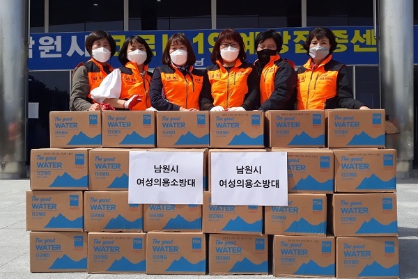 남원여성의용소방대(대장 양미옥)는 2분기 백신접종 준비 등 시민 안전을 위해 애쓰고 있는 관계자에게 생수 1000병을 전달하고, 코로나19 예방을 위해 지역아동센터 및 종교시설을 대상으로 방역 활동을 시행했다.