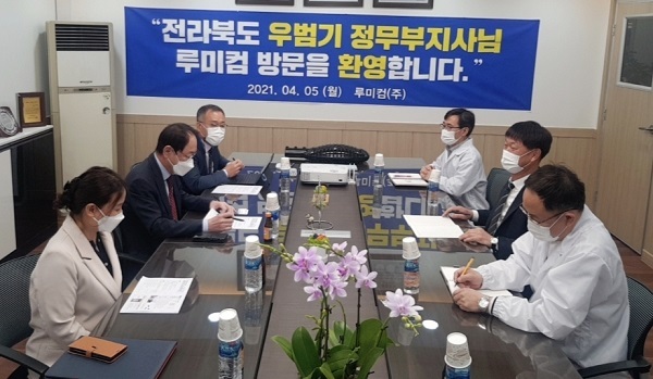 우범기 전북도 정무부지사는 5일 코로나19로 어려운 경영 여건에서도 끊임없는 기술개발로 역량을 키우고 있는 도내 중소기업을 루미컴(대표 이복수)과 금란산업개발(대표 은윤기) 등 2개 중소기업을 찾아 기업 동향 및 애로사항을 청취하는 현장 소통의 시간을 가졌다.