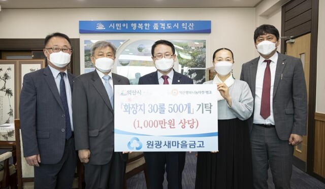 익산 원광새마을금고(이사장 성시종)는 6일 정헌율 익산시장을 방문해 나눔곳간을 이용하는 위기가구 지원에 사용해 달라며 1000만원 상당의 화장지를 기탁했다.