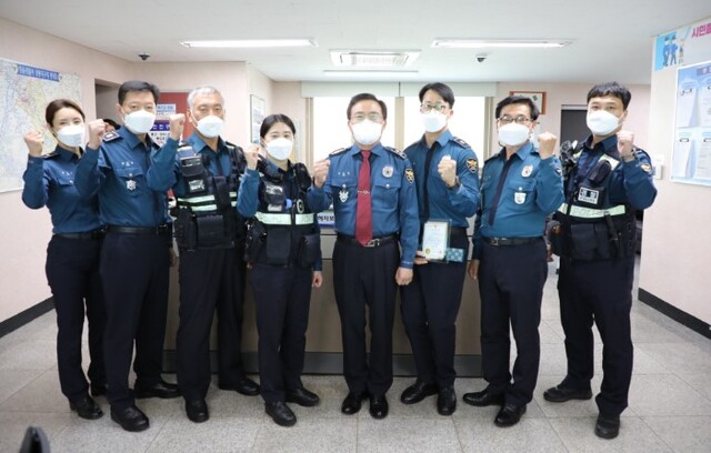 진교훈 전북경찰청장, 정읍 상동지구대에서 유공 직원 표창