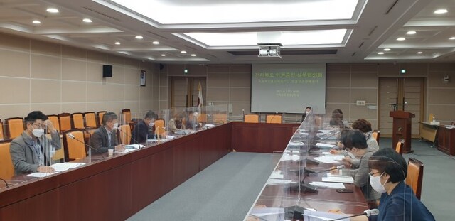 7일 전북도청 종합상황실에서 열린 실무협의회에는 전북도 인권담당관실과 소관부서인 사회복지과, 여성청소년과, 노인복지과, 장애인복지과, 보건의료과 등 5개 부서 9개 팀장 및 인권담당관이 모여 토론을 진행했다.