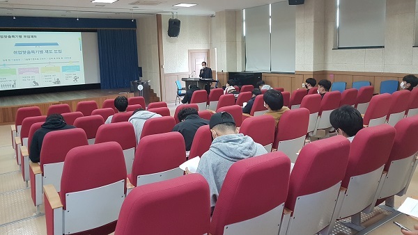 전북지방병무청(청장 이영희)은 7일 한국폴리텍대학 익산캠퍼스를 방문해 학위·기능사양성과정 학생을 대상으로 취업맞춤특기병 제도 설명회를 실시했다.