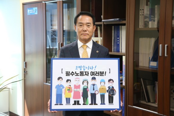 전북도의회 오평근 의원(민주당·전주2)이 8일 필수노동자를 응원하기 위한 “고맙습니다, 필수노동자” 챌린지에 동참했다.