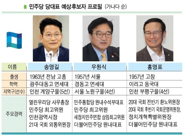 당 대표는 송영길, 우원식, 홍영표 경합