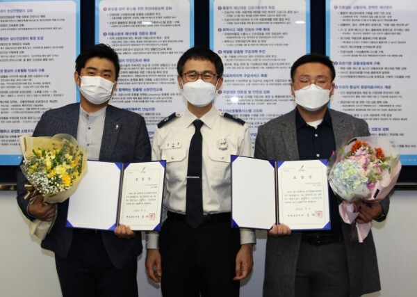 전북소방본부에 따르면 지난달 18일 오후 3시 20분께 전주한옥마을내 공예품전시관에서 근무 중이던 김배광(35)·노영빈(27)씨는 인근 주택에서 불이 난 것을 발견하고 119에 신고한 뒤 비상소화장치를 이용해 화재 진압에 나섰다.