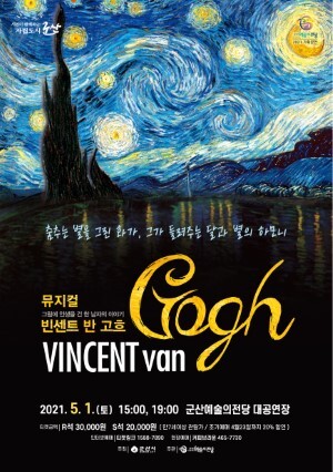 군산예술의전당은 다음 달 1일(오후 3시, 7시) 대공연장에서 뮤지컬 ‘빈센트 한 고흐’ 전을 진행한다.