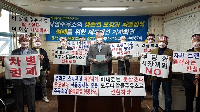 (사)한국주유소협회 전라북도회는 12일 기자회견을 열고 한국석유공사의 ‘자영주유소 죽이기 정책’의 희생양이 될 수 없는 만큼 전라북도 내 자영주유소(비 알뜰주유소)를 전부 알뜰주유소로 전환해 달라고 촉구했다.