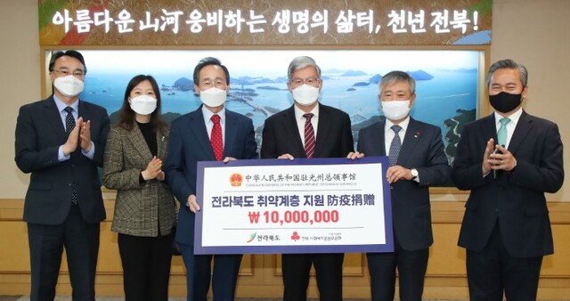 중국 주광주 총영사관(전북, 전남, 광주 영사구역)이 도내 취약계층을 위한 성금을 기탁하며, 따뜻한 정을 이어나갔다.