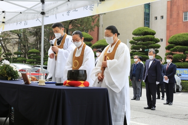 원광대(총장 박맹수)는 지난 16일 세월호 참사 7주기를 맞아 대학교당 주관으로 故 고창석(2000년 체육교육과 졸업), 故 이해봉(2007년 역사교육과 졸업) 동문을 비롯한 희생자 추도식을 거행했다.