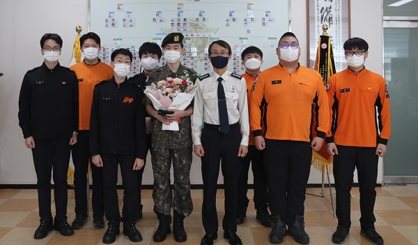 전역식은 윤병헌 서장의 기념패를 전달, 직원·의무소방대원들과 기념 촬영 등으로 진행됐다.