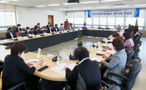 이날 간담회에는, 도내 건설관련 업계에 종사하는 여성경제인과 전문건설협회 제임원 등 20여명이 참석했으며, 코로나19 확산 방지를 위한 방역지침을 철저히 준수한 가운데 진행됐다.