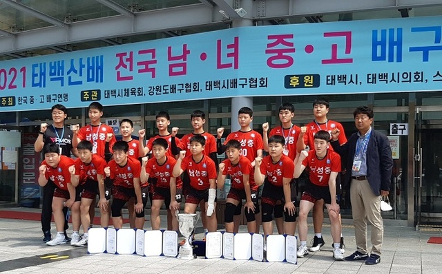 익산 남성중(교장 정성돈)은 21일 강원도 태백시 장성체육관에서 열린 2021 태백산배 전국남녀중고배구대회 남자중학부 결승에서 안양 연현중을 2대1(25-21 23-25 15-13)로 제압하고 우승했다.