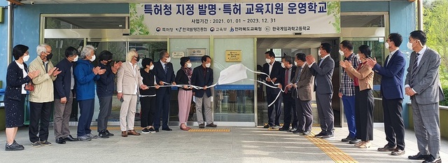 완주군 운주면에 있는 한국게임과학고가 특허청과 한국발명진흥회에서 공모한 2021년 직업계고 발명·특허 교육지원 공모사업에서 운영학교로 선정돼 지난 21일 현판식 행사를 가졌다. 한국게임과학고는 전국 13개교가 선정된 이번 공모 사업에서 전북에서는 유일하게 선정됐으며, 향후 3년간 지원 받는다.