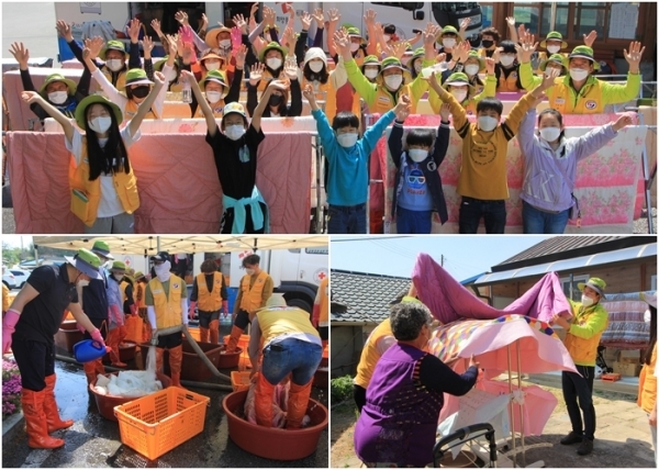 봉사활동에 참여한 적십자 봉사원 30여명은 독거노인과 소년소녀가장 가구를 돌며 겨울 동안 묵은 이불·담요(440㎏) 등을 직접 수거했다. 이후 적십자 이동세탁차량으로 옮겨 세탁한 후 깨끗한 이불을 전달했다.