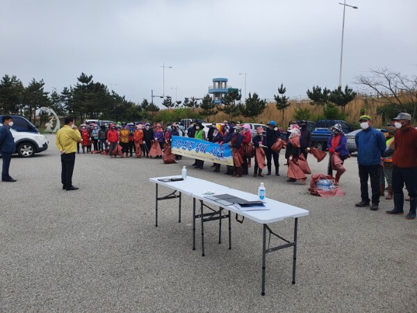 이날 김제시 4개 어촌계 90여명은 코로나 19 방역수칙을 준수하며 관광객이 많이 찾는 새만금 신항조성 현장 주변 해안가를 첫 번째 사업장소 시작으로 어촌마을 환경정비에 나섰다.