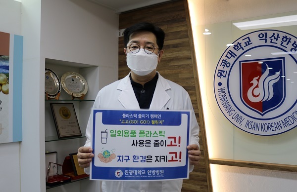 원광대학교 한방병원 이정한 병원장은 지난 30일 환경부가 주관하는 생활 속 플라스틱 줄이기 캠페인 ‘고고(GO! GO!)챌린지’에 동참했다.