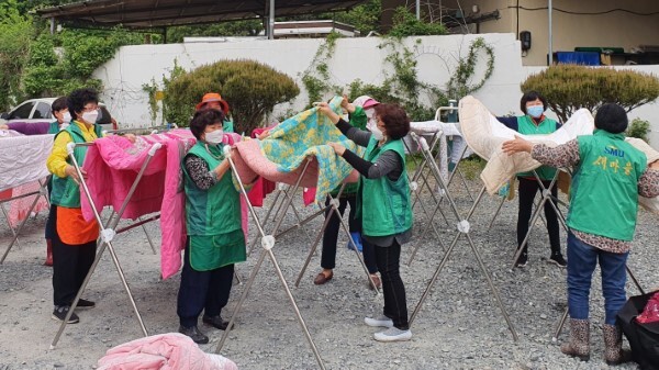 완주군 경천면 새마을부녀회(회장 박분이)가 회원 11명이 최근 이불 빨래에 어려움을 겪고 있는 독거노인과 취약계층 가정 20세대의 이불 30여 채를 수거해 세탁했다. 이번 빨래봉사는 완주군자원봉사센터의 이동빨래차량을 지원받아 이뤄졌다.