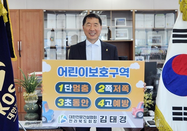 대한전문건설협회 전라북도회(회장 김태경)이 지난 29일 어린이 보호구역 내 교통사고 예방에 대한 사회적 공감대 형성을 위해 어린이 교통안전 릴레이 챌린지에 동참했다.