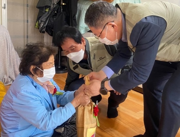 이번 행사는 코로나19 방역지침을 준수해 최소한의 인원이 참여했으며, 코로나19 장기화로 일상생활에 고독감을 느끼는 독거노인들께 훈훈한 이웃의 정과 어르신을 공경하는 마음을 전달하기 위한 취지로 진행됐다.