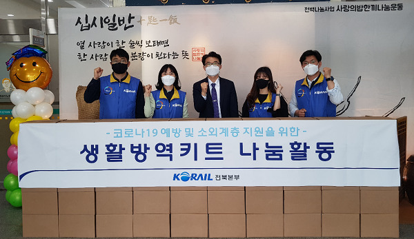 한국철도 전북본부(본부장 차경수)는 지난 7일 가정의 달을 맞아 익산시노인종합복지관에 생활방역키트 50박스를 기탁했다.