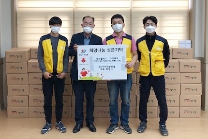 이날 기탁받은 농산물은 코로나19로 여파로 경제적·심리적으로 힘든 취약 계층에게 골고루 전달될 예정이다.