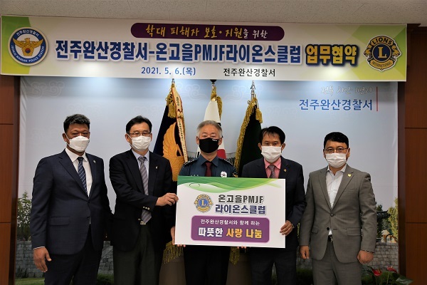 전주완산경찰서(서장 김주원)는 온고을PMJF라이온스클럽(회장 임춘봉)과 학대 피해자 보호·지원을 위한 업무협약을 체결했다고 10일 밝혔다.