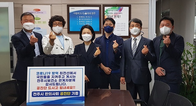 이에 김신선 전주시보건소장은 “항상 보건업무에 적극적으로 협조해주시는 전주시한의사회의 배려에 감사를 드린다”며 ”코로나19 상황이 하루 빨리 종식될 수 있도록 더욱 분발하고 최선을 다하겠다”고 말했다.