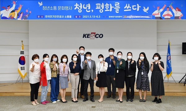 한국전기안전공사(사장 박지현)은 지난 13일 전북혁신도시 본사에서 민주평화통일자문회의 완주군협의회와 ‘청년, 평화를 쓰다’ 행사를 개최했다.