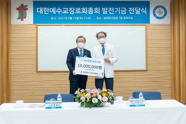 대한예수교장로회총회가 코로나19 극복을 위해 힘쓰는 의료진을 격려하기 위해 예수병원(병원장 김철승)에 발전기금 1000만 원을 기탁했다.