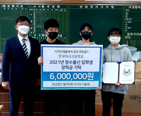 한국마사고등학교 서동해 이사장이 학교발전과 지역인재 양성을 위해 장학금 600만원을 기탁했다.
