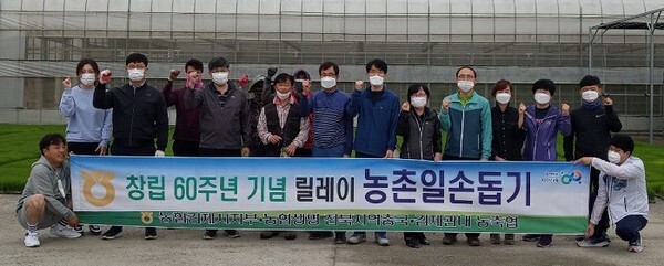 농협 김제시지부(지부장 김태곤)는 농협생명 전북총국을 비롯한 지역농·축협 임직원 40여 명과 함께 백구농협 육묘장을 찾아‘농협 창립 60주년 기념’ 전북농협 31번째 릴레이 일손 돕기를 실시했다.